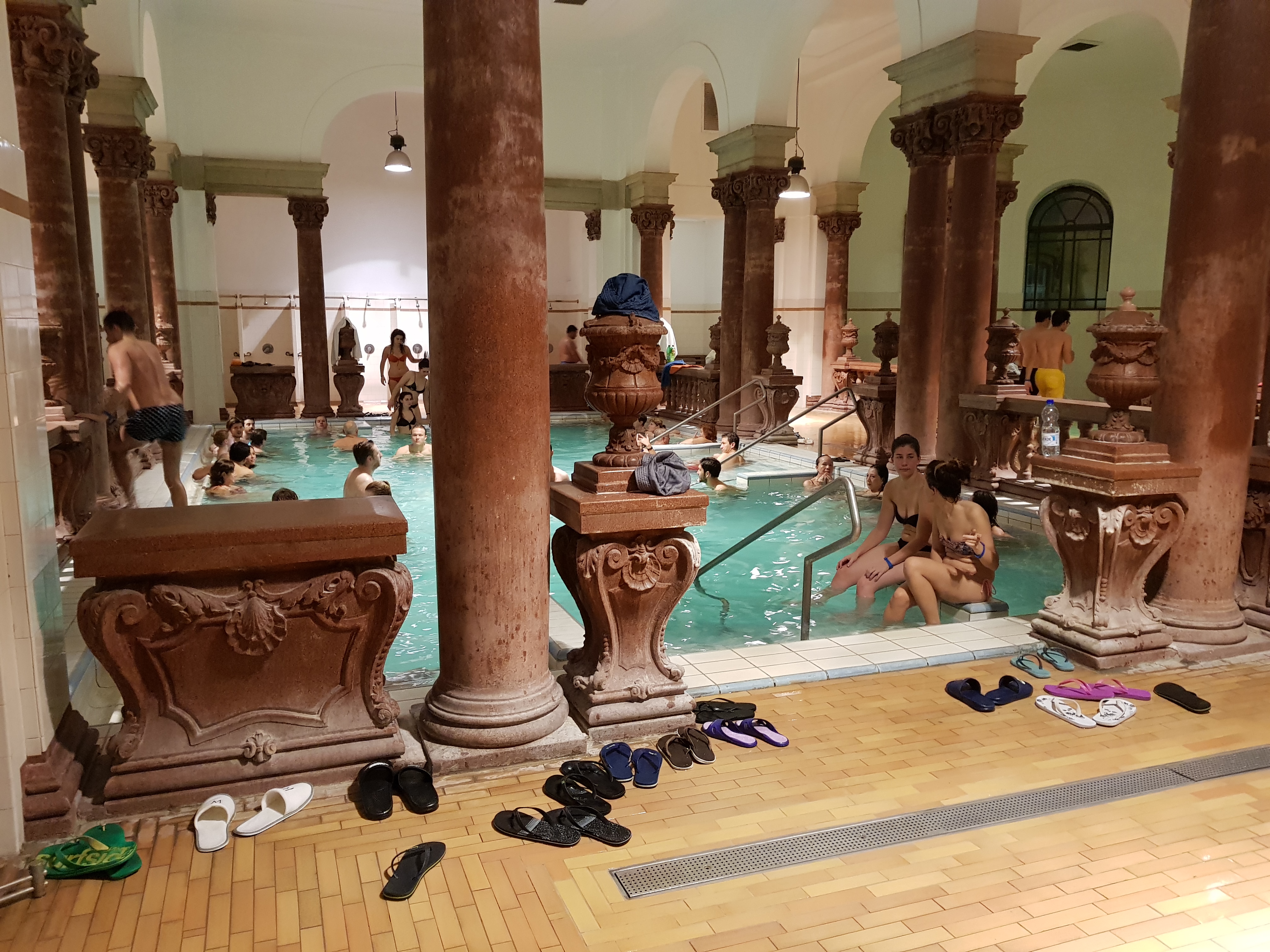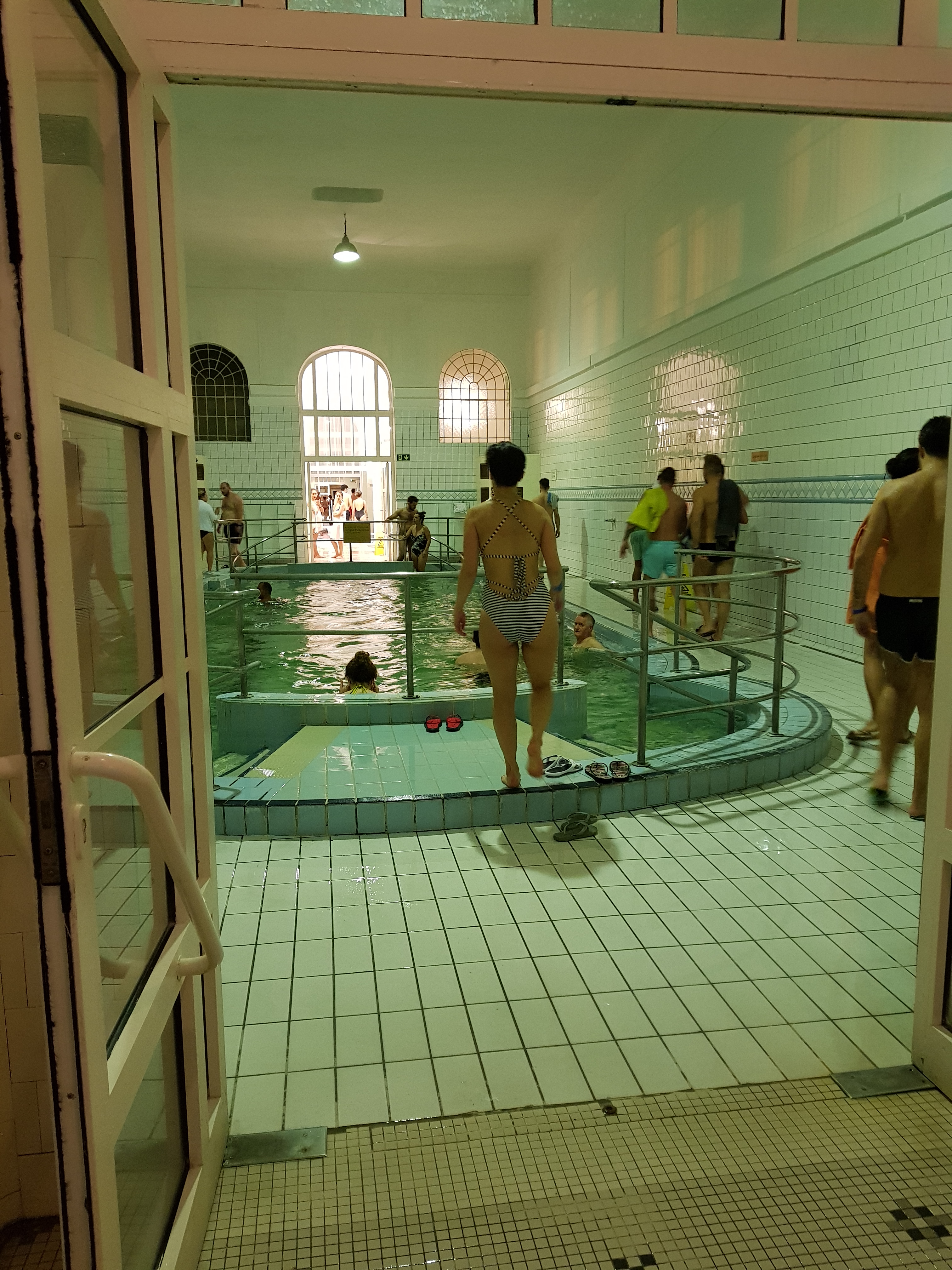 The bath was a really cool place! It was like a block of a low building, enclosing pools. One of them was really warm and it was perfect with the fall weather of November. There was a pool for laps and also a pool with a strong current. That was fun! But some people were so disrespectful and bumped into people all the time, both unconsciously but also consciously. Not okay!