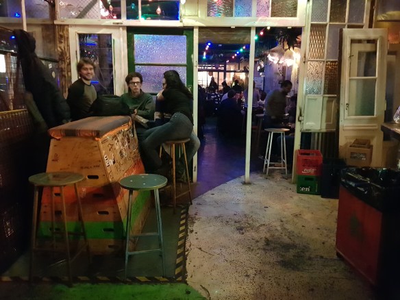 After dinner we walked to a ruin bar, Szimpla Kert, the most famous one. It was the craziest bar ever! After WWII, there were a lot of abandoned buildings and eventually people put stuff in there and started up bars (or something like that). Everything in there was random and inside the building were several bars with different focus. The coziest room was the old tech junkyard with old screens and lights intertwined. Or the top floor where there was a hole in the floor. It is hard to describe. So I will post pictures when I get home. Probably not tomorrow. But Tuesday?