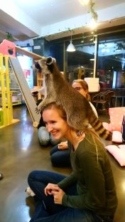 We then took the metro to Hongdae where we went to Meerkat Friends café. It was a cafe with meerkats and other animals such as racoon, cats, wallaby, foxes. It was the cutest place and the animals were so nice and friendly. We even got to feed them all. It was a nice place and it honestly felt like the animals had a good time there with big windows, so much air, and it was kept very clean. Six of the meerkats fell asleep in my lap, the racoon wanted to escape and begged for food. The foxes were so adorable and one of the wallabies had a baby in its pouch. We were there for a long time and got unreasonably many pictures, but due to space limitations, I can’t upload them now, sorry. I will as soon as I possibly can though!