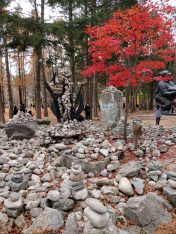The main stop for this tour was Nami Island, which is also its own country since 2006: Naminara Republic of Korea. It has its own passport and even currency and government. It is a small half-moon-shaped island, only 5km in circumference. Really pretty place and Winter Sonata, a K-drama has been filmed there. It was pretty, but most of the leaves had fallen off the trees compared to in Seoul. This was an island located in the city of Chuncheon, about 1.5h from Seoul.