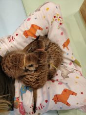 When they calmed down and realized I didn’t have any food, they climbed up in my lap one after one and fell asleep. Eventually I had 6 of them sleeping there! So adorable!