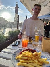 Schnitzel and currywurst dinner by the Spree.