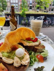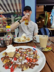 After the museum visit, we were hungry since we skipped breakfast and walked straight to the museum. Amsterdam is famous for pancakes so we found a place by the Floating Flower Market called the Pancake Company where we both had Poffertjes, a Dutch specialty. Basically small pancakes with topping. Really good!