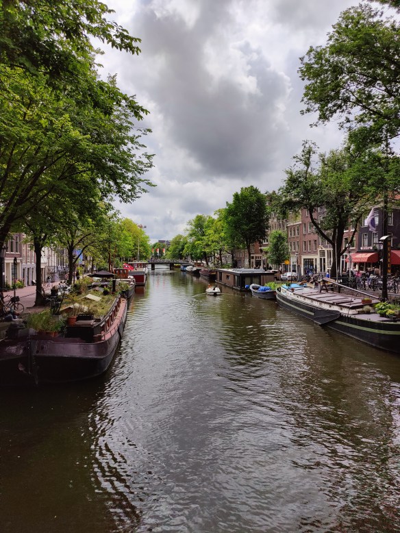 After the quiet residential neighborhood we just walked around. Saw lots of canals, and honestly: they all look the same basically. At first,  the canals were built to be a part of the military defense system, but when the city grew, the more inner canals military function was lost and they were instead used for transportation. I have to admit though, that even if I have traveled a lot through the years, I’ve never seen a city like this. So much water, easy to navigate, old and preserved architecture. it’s really quite something. We thought we would get a lot of rain today, but we didn’t and actually even got some sun every now and then.
