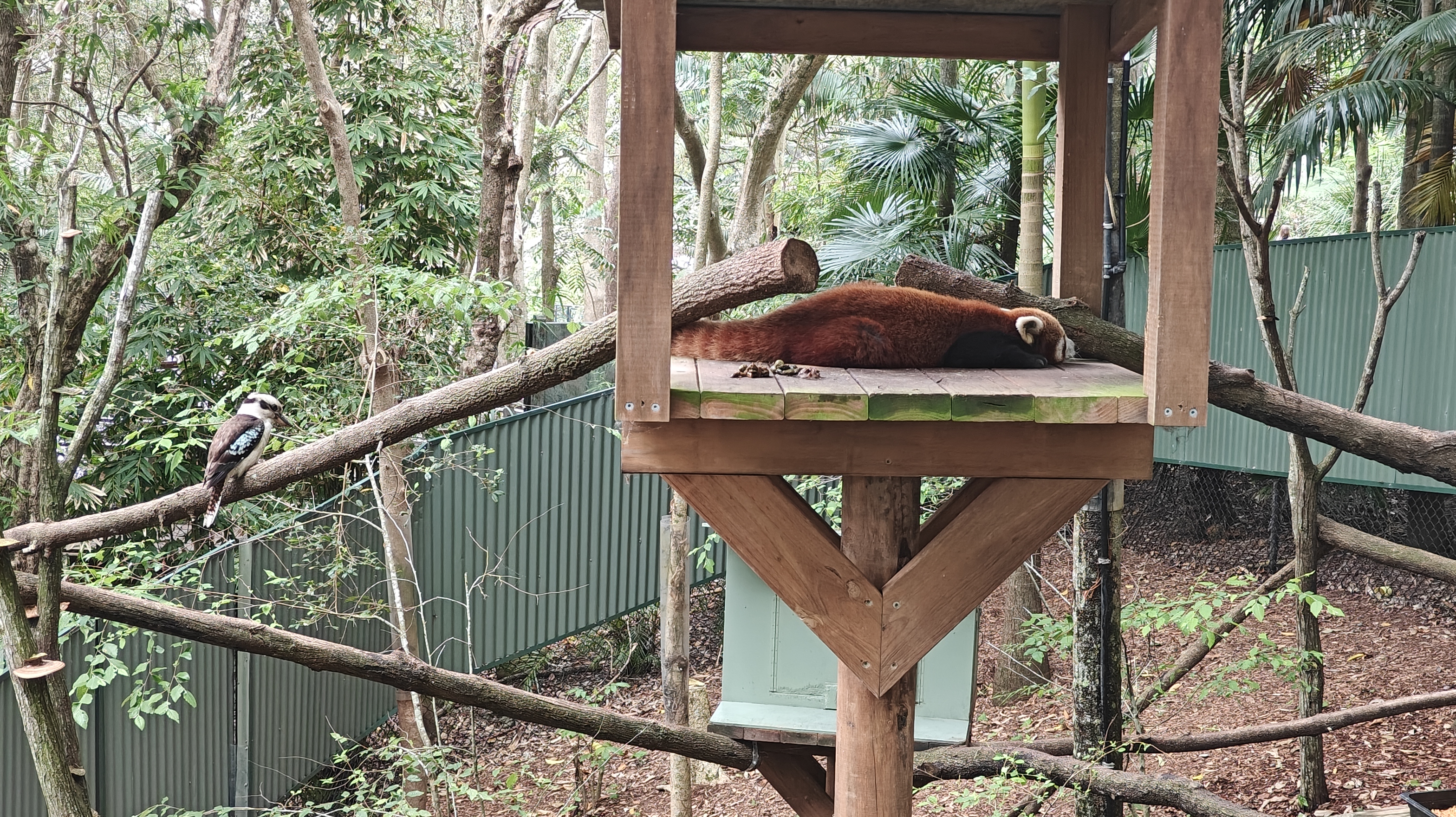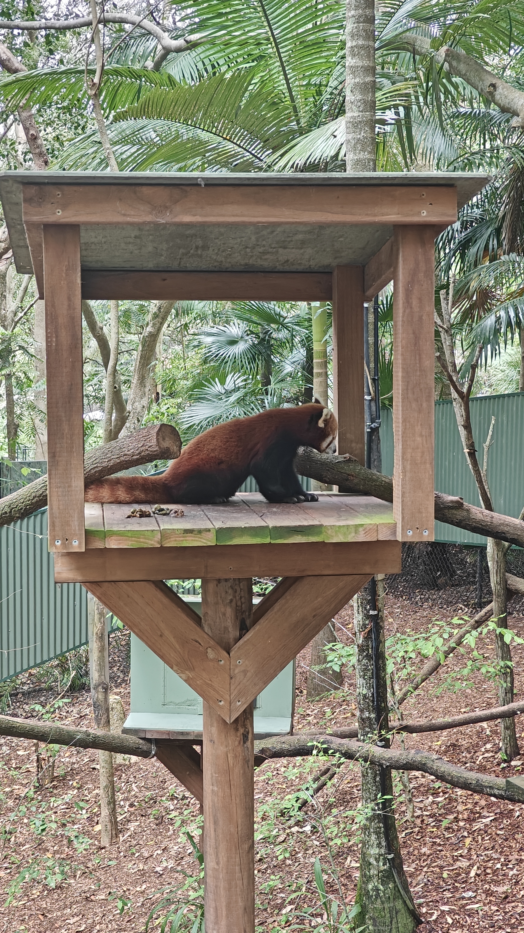 Another favorite animal of mine: red pandas! I was so excited to see it being fed, but it just stood like this for a few minutes, staring at the food, before deciding to lay down and sleep again.