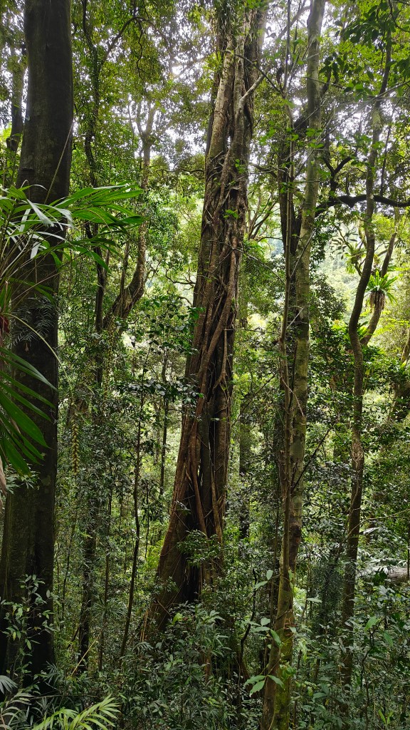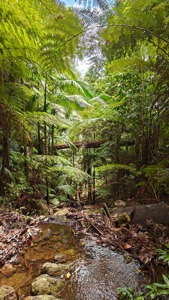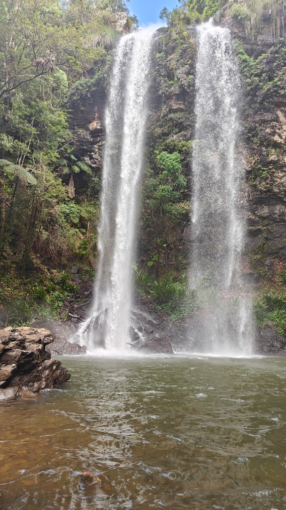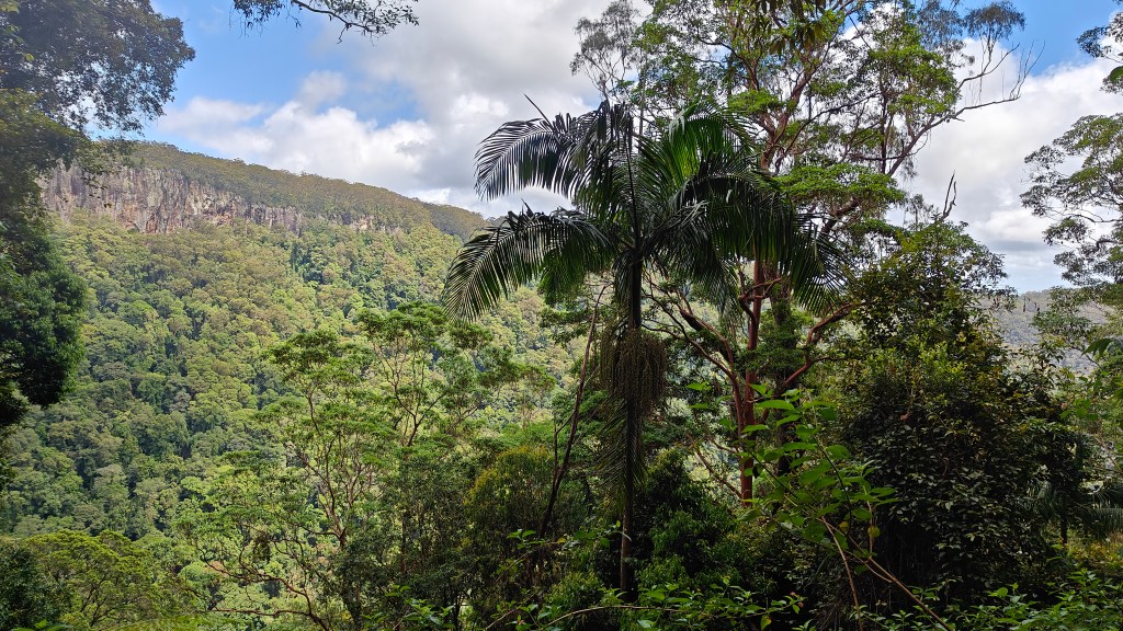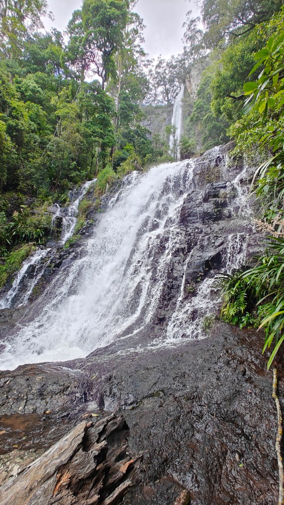 Warrie Circuit is 14km roundtrip, starting up high, twisting its way down into the valley and then up again on the other side. Starting point is Twin Falls Walk Start and goes either way, but we did counter-clockwise so we had Twin Falls at the end and got a well deserved dip in the pool beneath the falls. It was so cold but really nice! And no leeches as it had been along the path so far. I don’t mind wildlife, but leeches creeped my out, even if they were tiny.