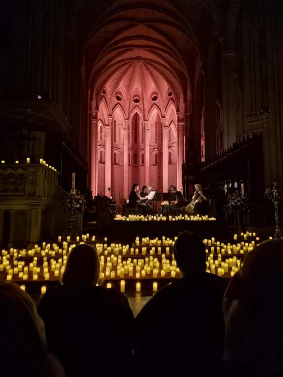 Mikael had gotten us seats very close to the stage. Not that I think that it mattered as the acoustics in a church is amazing no matter where you sit. But it was nice sitting so close to all the candles and actually seeing Paradiso Strings playing their instruments. There were three violins and 1 cello and they talked about the movies and tv shows in between songs. I did feel the music, I did get goosebumps and could see the movie scenes before my inner eye, but I couldn’t really feel it when they were talking about the impactful scene from which the music came from. But I guess, since they are performing anything from Taylor Swift tributes to best of Hans Zimmer, Pink Floyd tributes and other movie music, they can’t be as hardcore fans as we are. It was incredible though and that hour went by way too fast. Highly recommend!