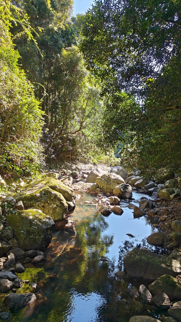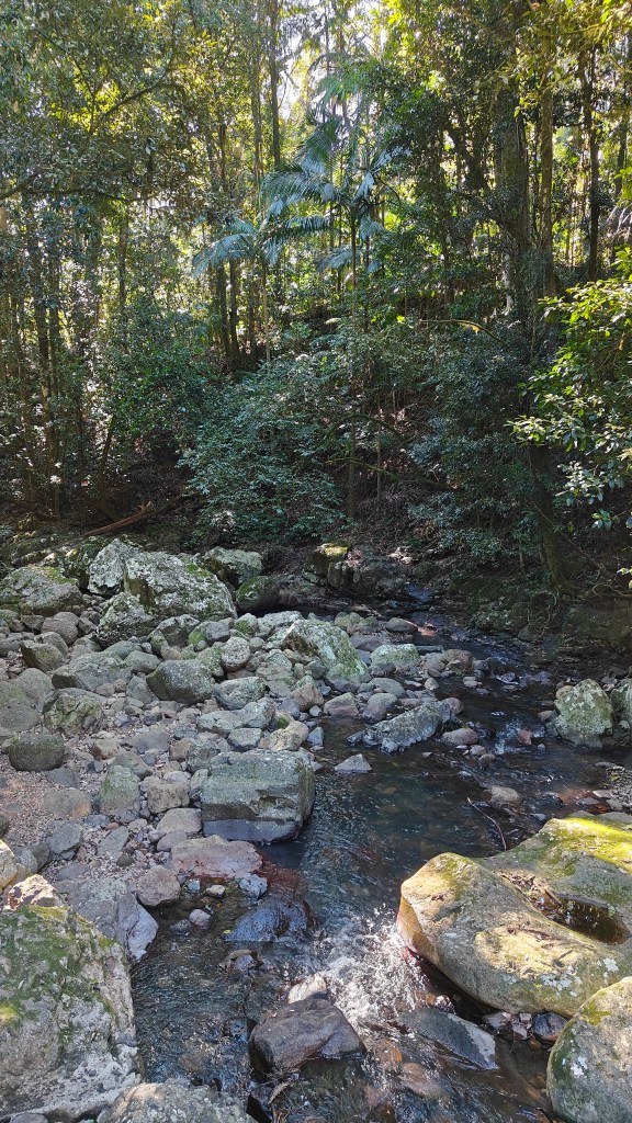 The full circuit is asphalted through beautiful rainforest with intricate trees, circling around running water and waterfalls. Lots of stairs in the beginning, but a very easy trail to follow. Both times we went, first just Mikael and I, and a week later with my mom as well, we saw a wallaby. In the exact same location both times. Our first encounter in the wild. I don’t think I will ever tire of wildlife here. It is magical! And wallabies are so small and adorable!