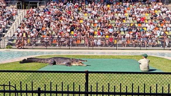 This daily show at the Crocoseum always gets to me. I am so happy that Robert Irwin himself was there for Mikael and mine’s first visit last year. This time around, when mom joined, was as good though. The informative video clips of Steve and Terri explaining how to deal with a snake bite with the dangerously venomous rope snake, is just hilarious, while at the same time could save your life one day. It really breaks my heart that Steve was taken from this earth way too soon.