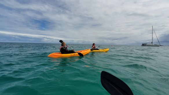We booked the water adventure kit which meant we had access to snorkeling gear to go out swimming on the wrecks, kayaks and stand up paddle boards. As for most people, we took the kayaks and paddled all the way up to the wrecks. That took about half an hour and was surprisingly tough but really enjoyable. At least for me. Both mom and Mikael seemed to have a slightly more difficult time finding good seating positions in the kayaks. Mikael and I had our scuba ABC kit with us so we wouldn’t have to borrow. I also had my 3mm wetsuit, which was too cold for me – I was freezing at the end of the snorkeling trip.