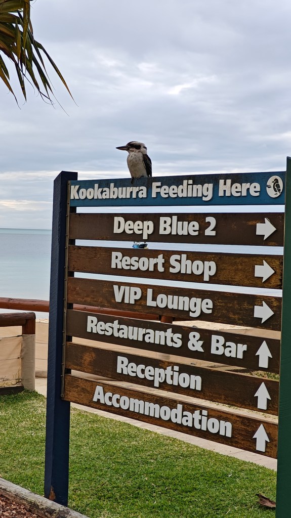 They had a kookaburra feeding at 5pm every day where usually there are several kookaburra’s coming in, but there was only one sitting and waiting at the time. Most likely because the rest of the family was nesting with new chicks.