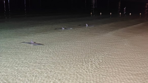 After this, we had our sunset drink by the ocean. We were so excited to see a sunset over the ocean, but due to clouds, we didn’t really get to see much. And after the sunset, there was the dolphin feeding.
