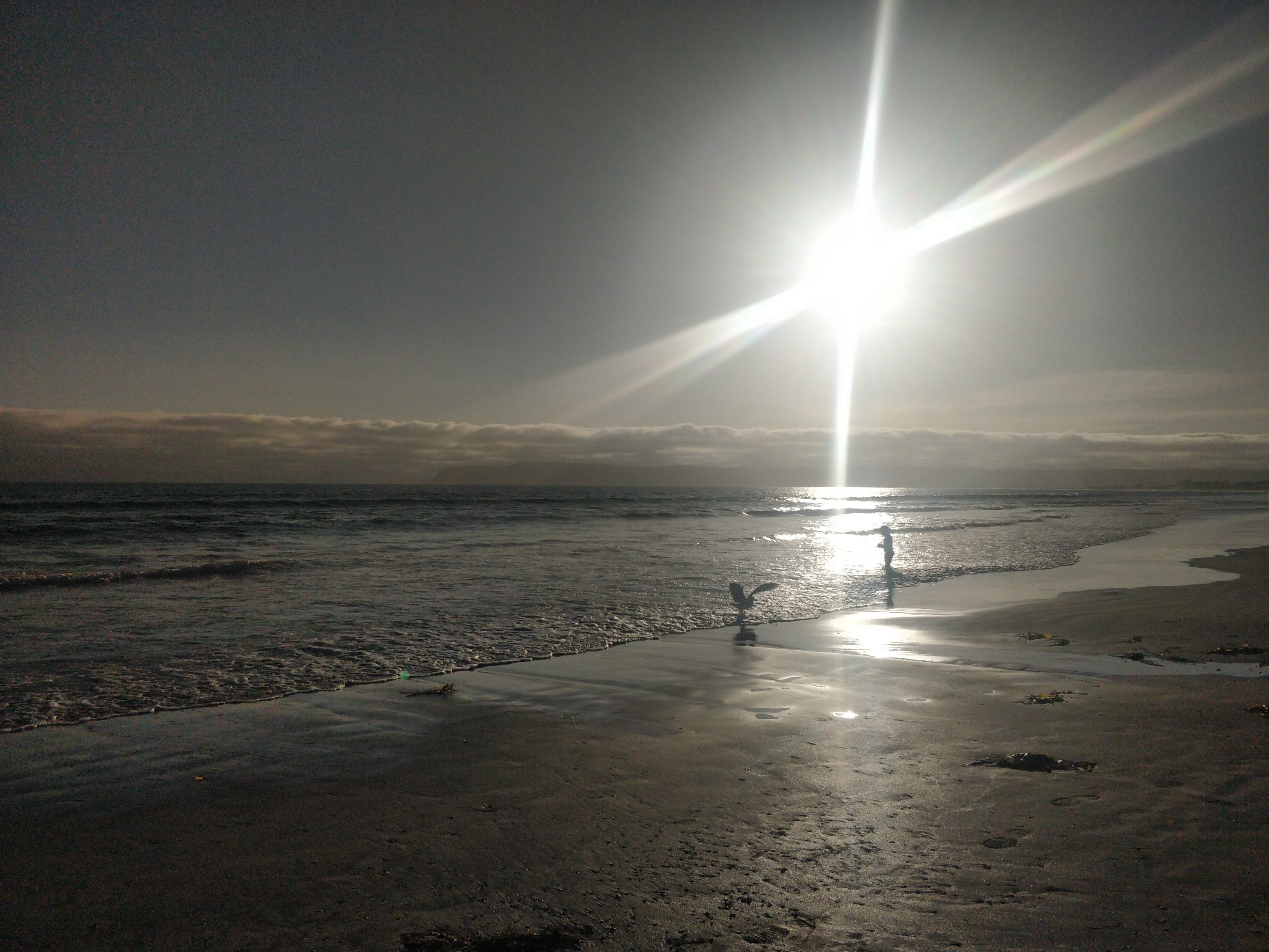 After the intense 26k step day yesterday we just drove down to La Jolla Shores and stayed there for the day. Since I have gotten a pretty bad cold, surfing was out of the question. Everyhing but laying on the beach reading was out of the question. Muscle soreness in our butts from yesterday’s hike is revealing itself more and more for each hour. So all three of us just laid there. It was cloudy like no other days, but it was still warm. If it was sunny I think it would have been unbearable. We only stayed until 3pm and since those 4 hours flew past I guess that I must have fallen asleep pretty hard right there because I got burned. Pretty bad on my stomach. Even after putting on SPF 30 twice!
