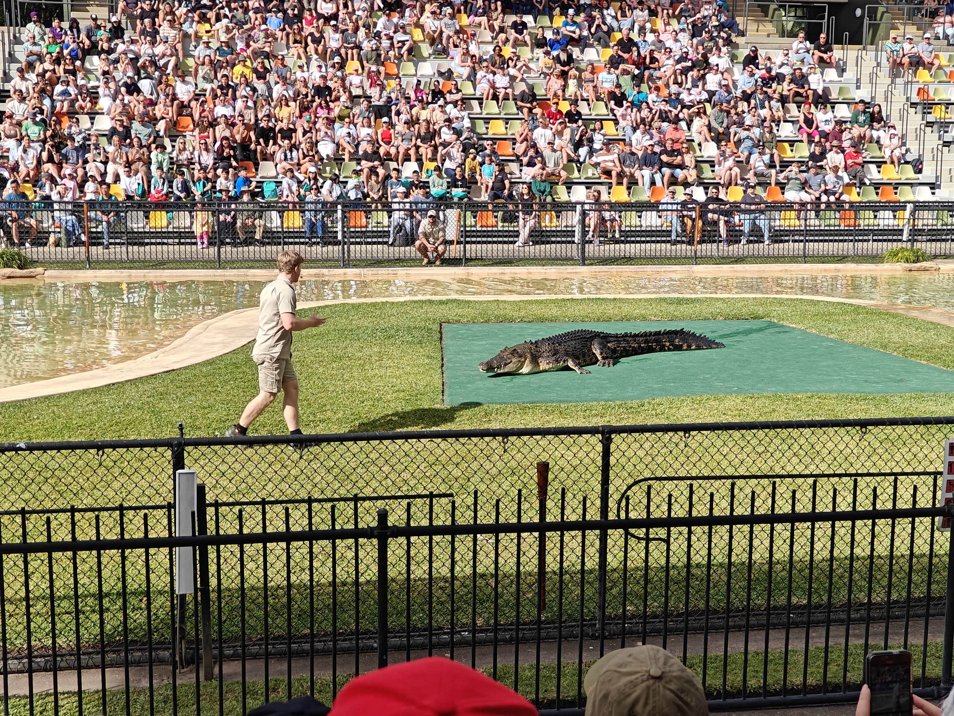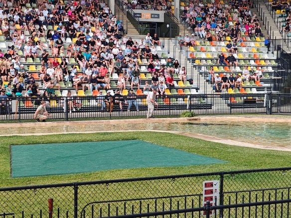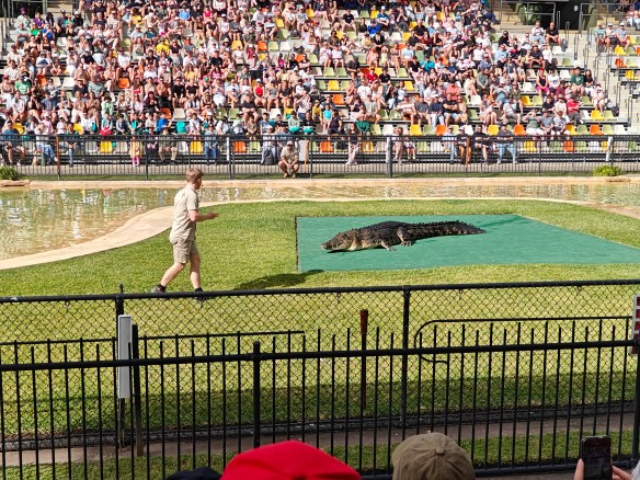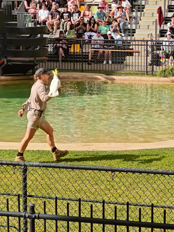 Robert Irwin going in his dad’s footsteps. The show was both birds and Bluey, the crocodile. We got a lesson in what to do if we get bitten by a snake and what to think about when being close to water.