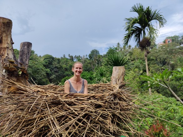 First, we went to Tegallalang Rice Fields, which I thought would be just beautiful rice fields, but instead we ended up at a day pool club. And that place was all about Instagram and getting the perfect picture from swings to infinity pools and photo places. It was cool, sure. But I would have been happy just seeing the fields. We had lunch there at the restaurant with the great view. We had Satay which is a spicy course here on Bali, compared to back home when Satay is more sweet and peanut-y. We saw two Luwaks, the civit animals who are picky coffee bean eaters, who later poop out fermented beans that are then ground down to coffee. We tried a cup there and then and it was not as sour as the coffee we drink back home. Not too bad!