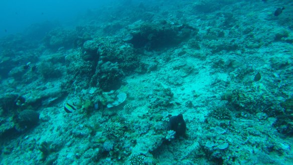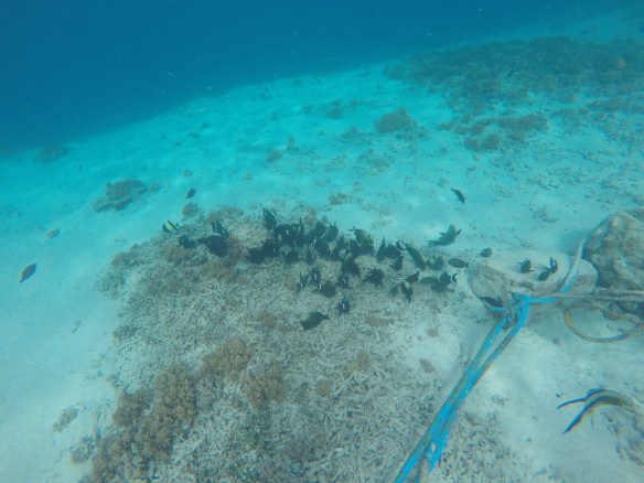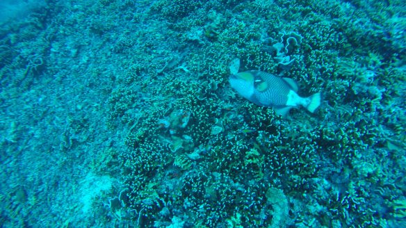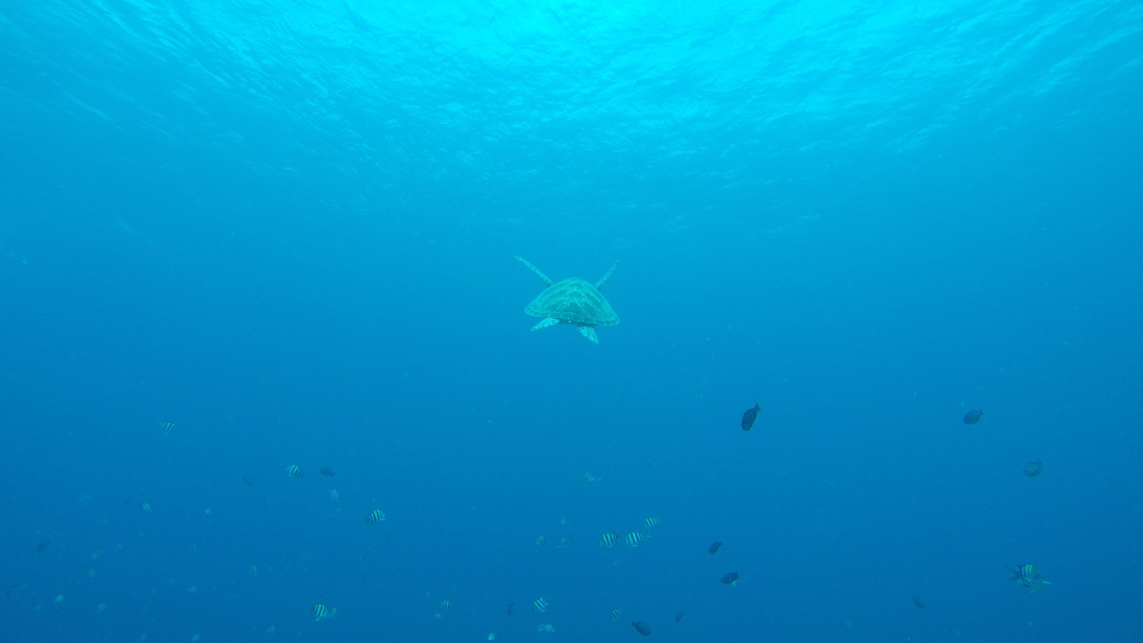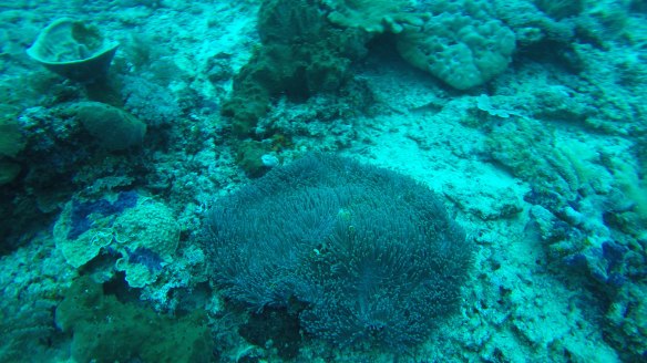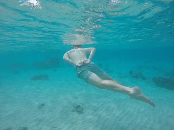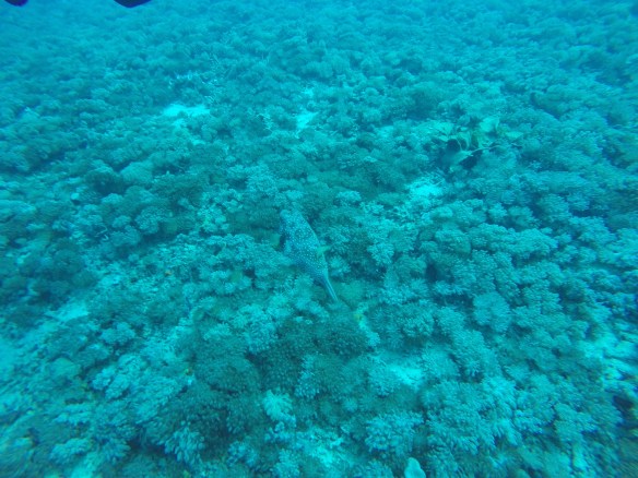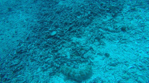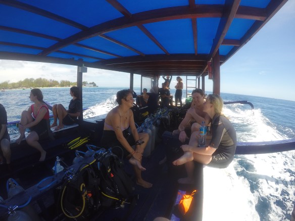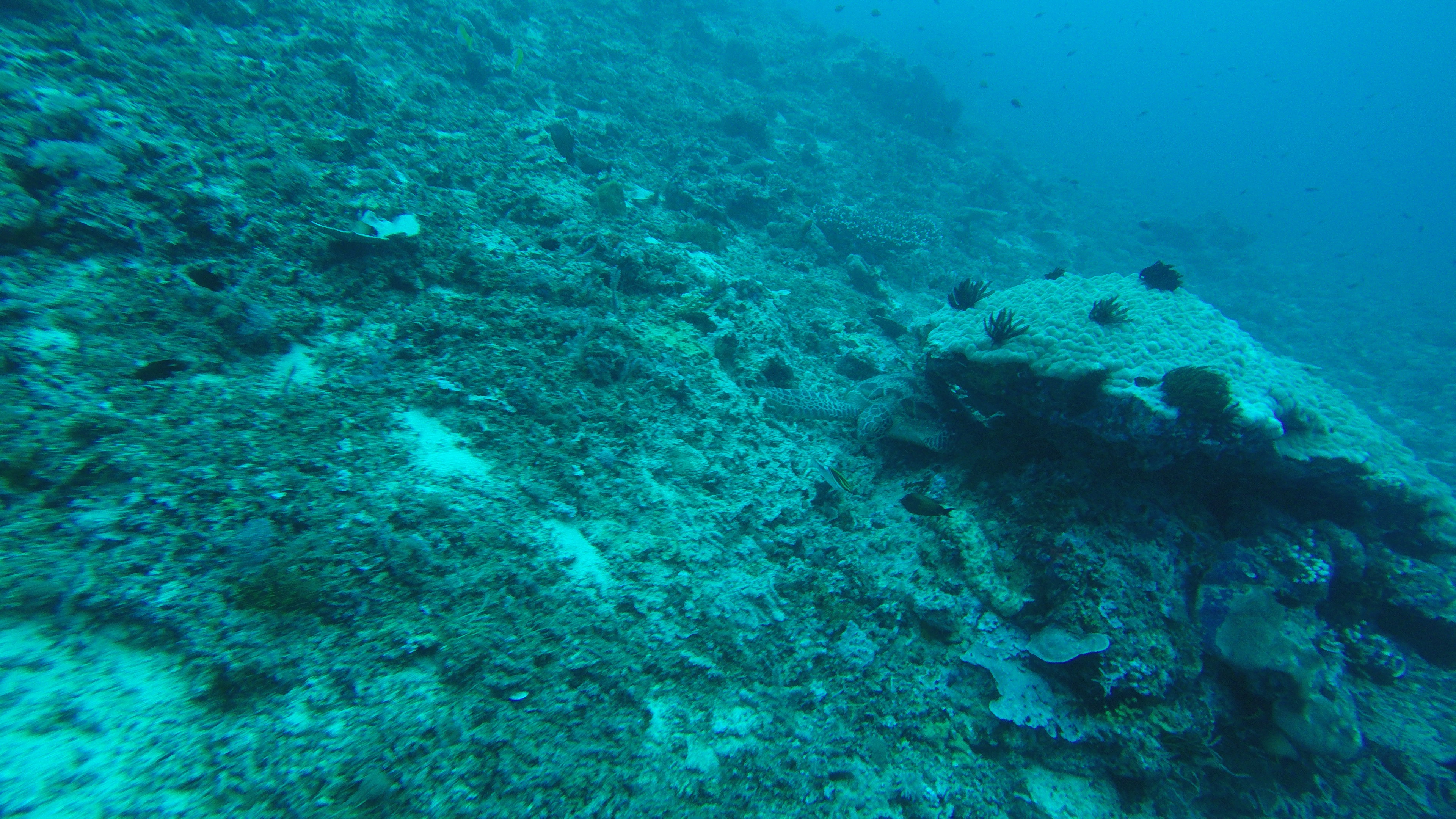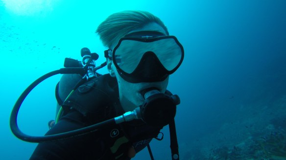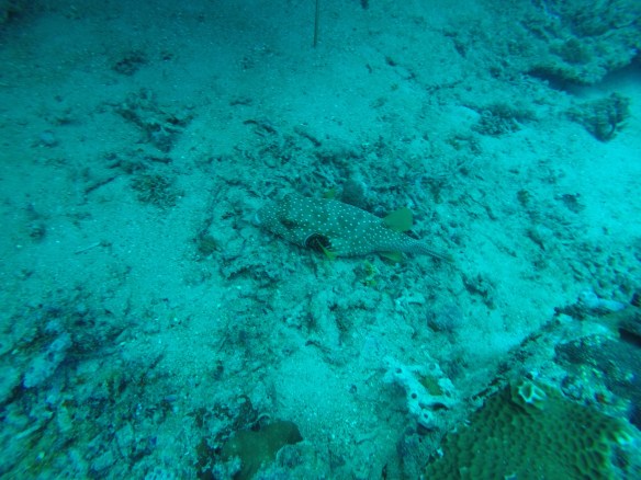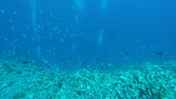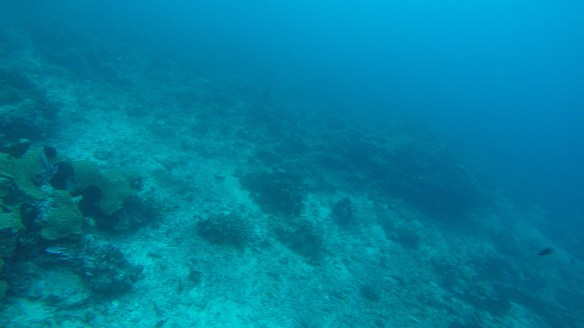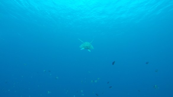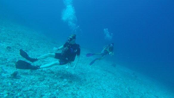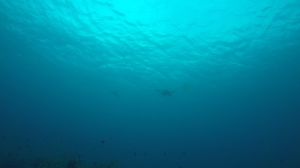 So for this dive we had an elder Dutch couple (50 maybe?) Joining us and Rahman. They said they had around 50-60 dives, which would make them fairly experienced. We descended and started the dive as usual but after around half, just when I’m about to swim up to three big turtles lying next to each other on the ground, I see Rahman shoot back and I turn around and see Mikael swimming towards me and behind him, halfway up to the surface is a bubbly mess of one of our diving buddies. Her husband was further down, trying to get Rahman to help him help his wife who kept ascending. For those of you who don’t dive, that’s bad! You can’t get up that quickly from 18m depth without doing a safety stop of 3 minutes on 5m depth. The risk of decompression sickness is much higher if you don’t make the stop. Mikael and I ascended a bit but stayed at least at 10m and let Rahman handle the situation. Eventually she came back down and the dive continued. She signaled she was fine. So we descended again and continued.