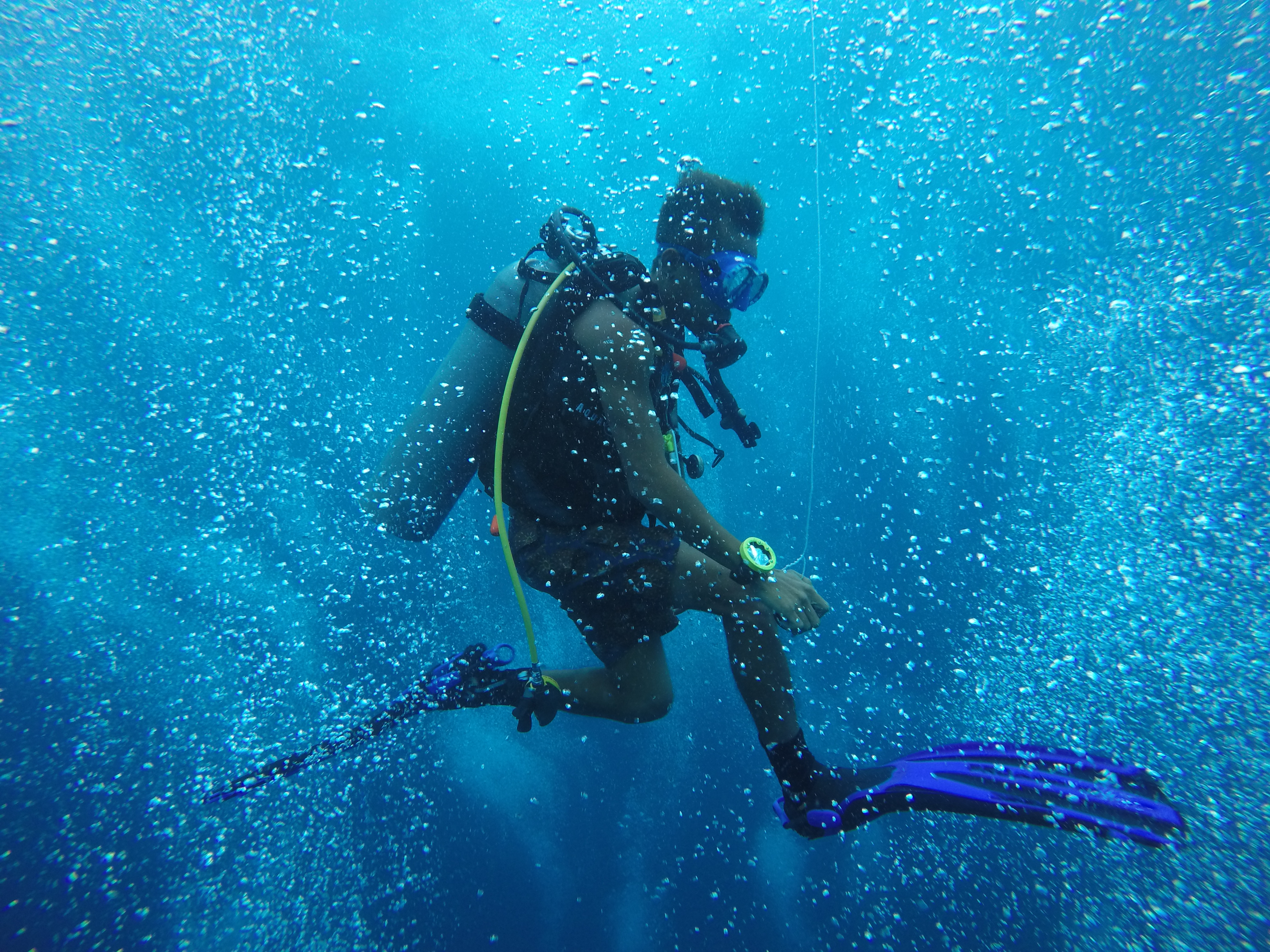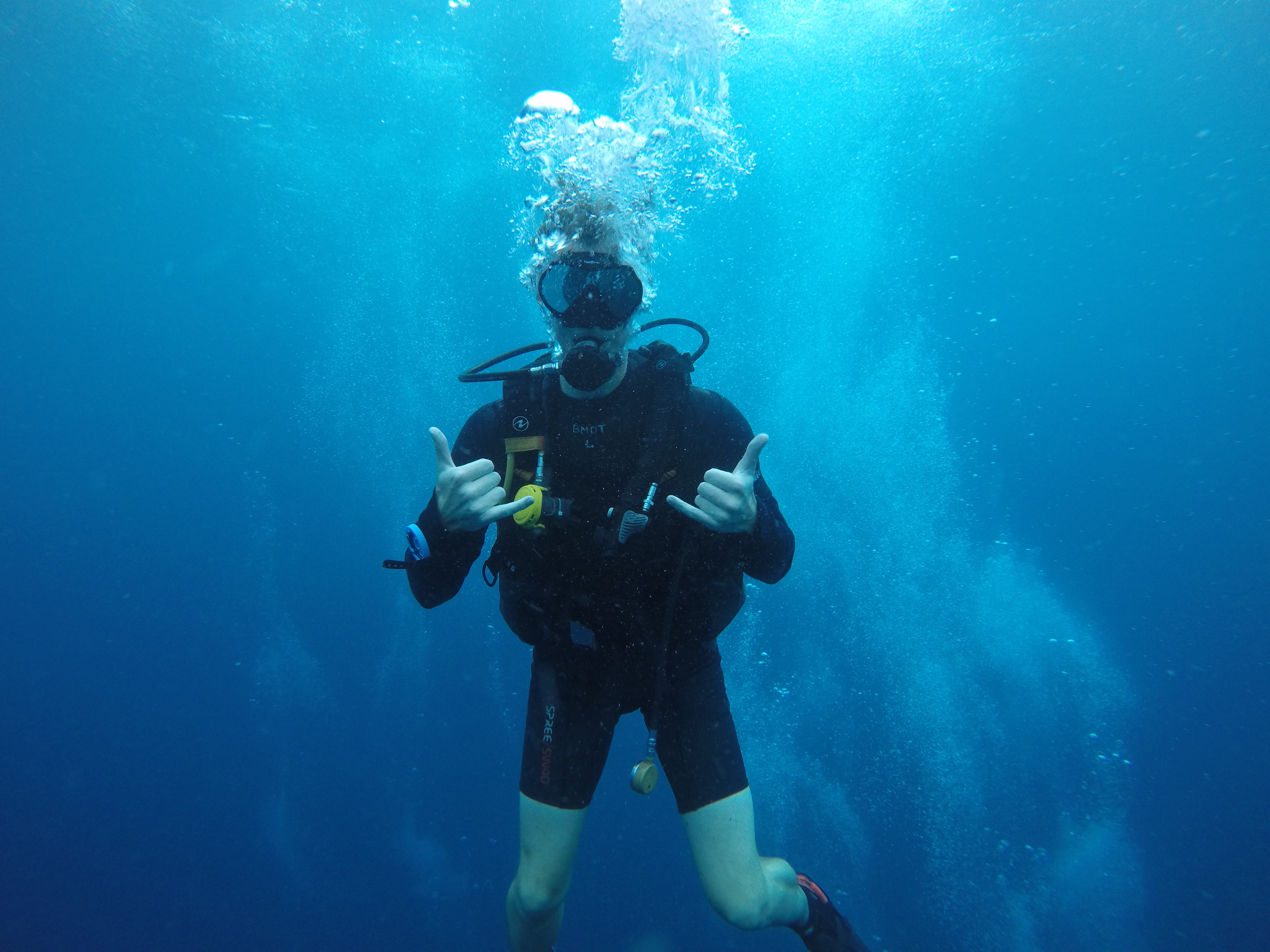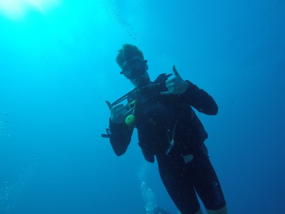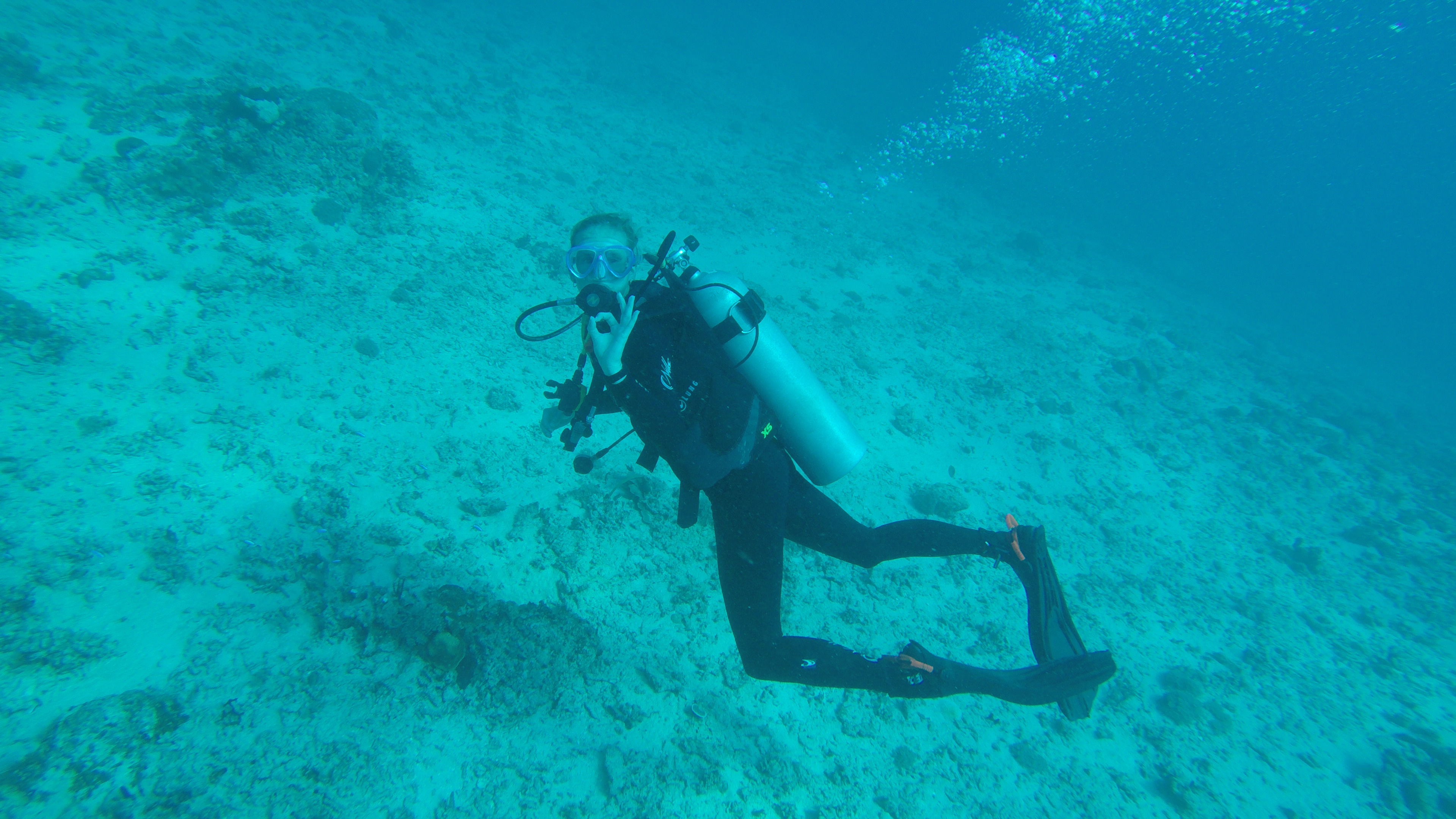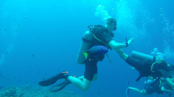 Later, she seemed fine and told us that she couldn’t deflate her BCD when trying to maintain her boyancy under water. I hope she didn’t get decompression sickness. Because that’s bad!