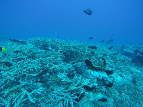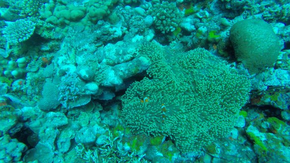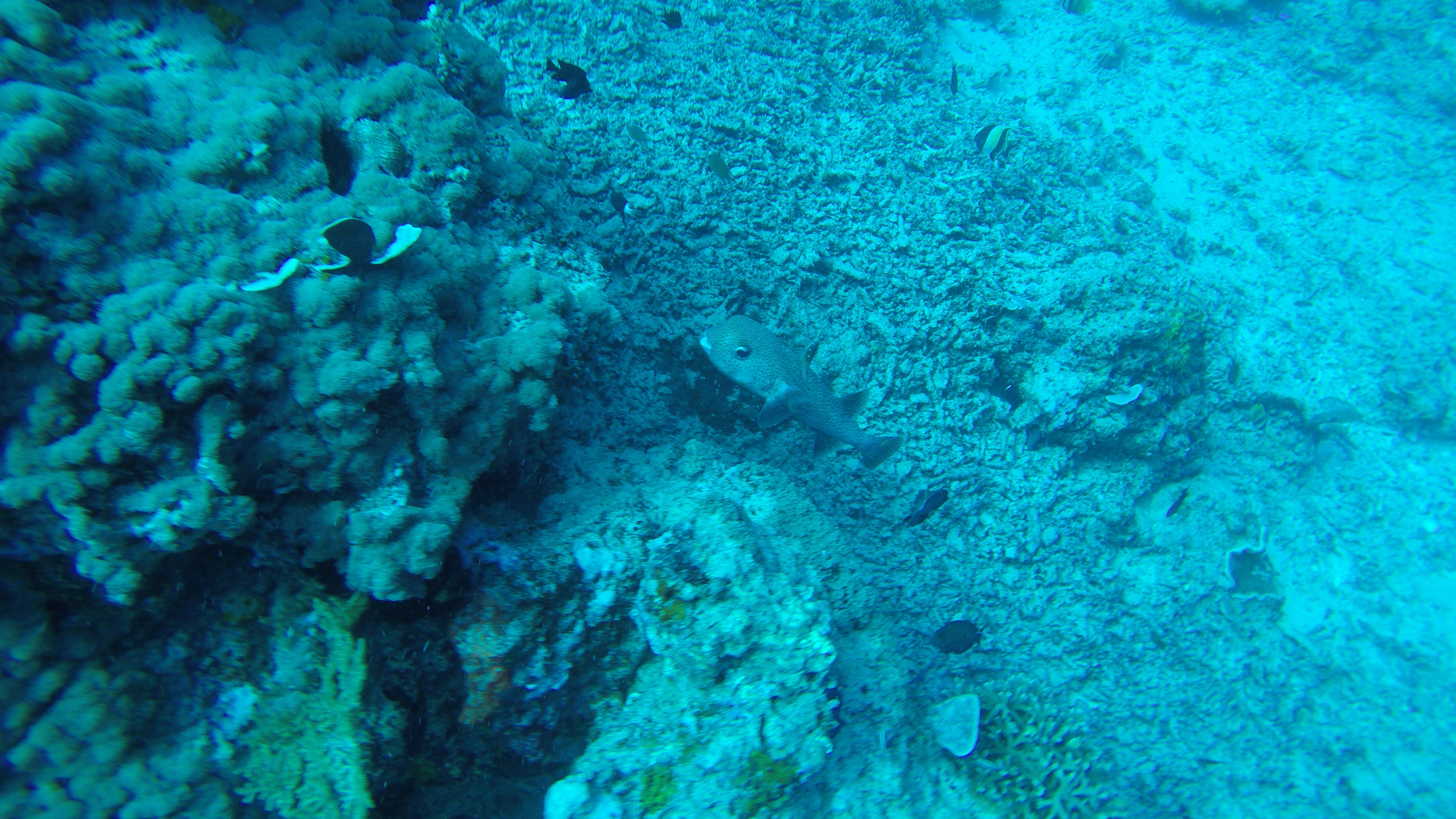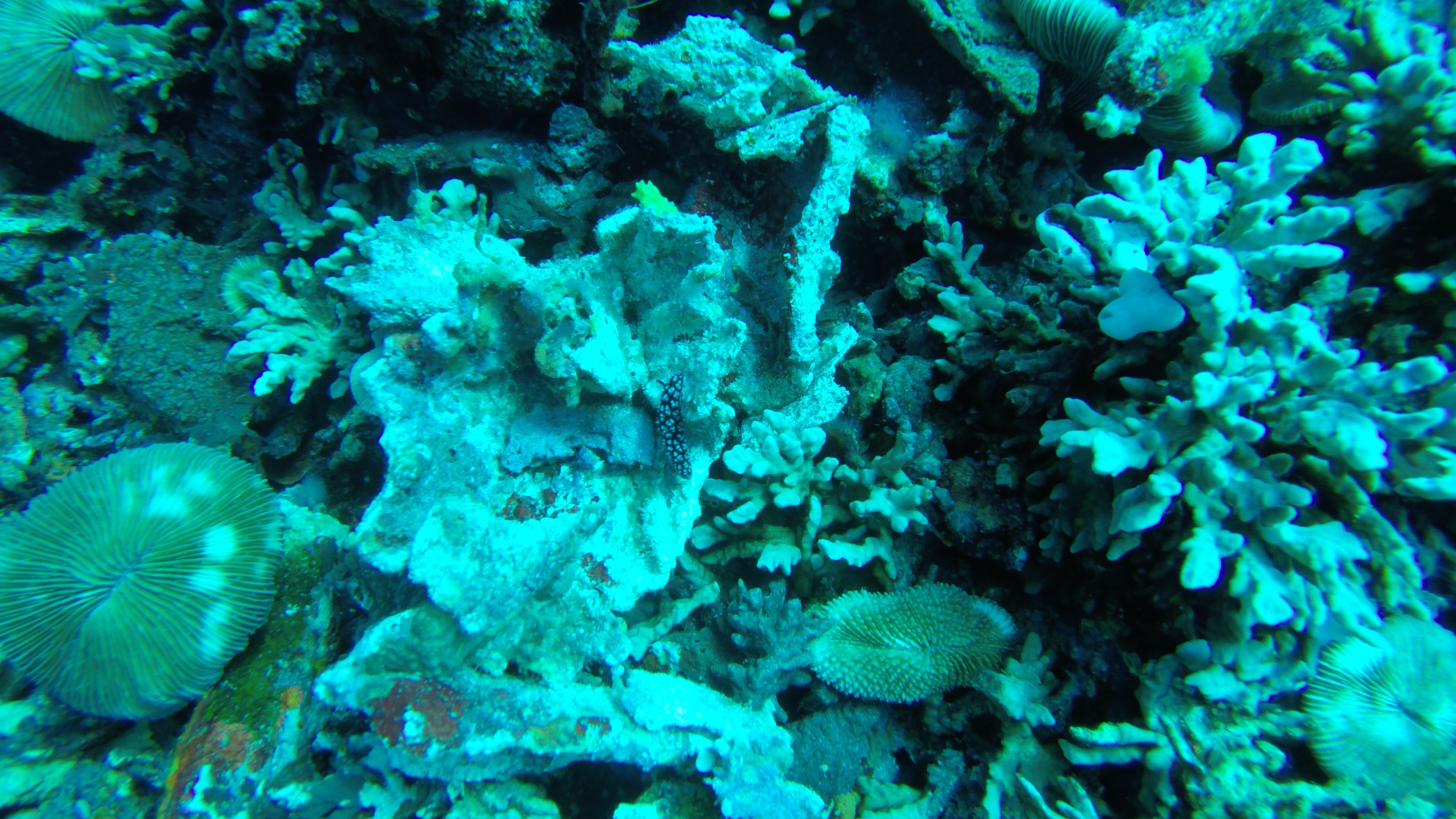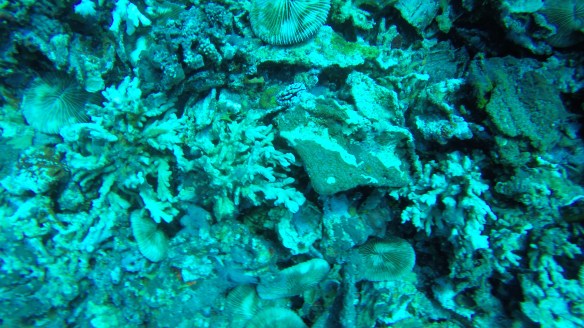 We also saw a couple of morays, one of which were swimming. A blue-spotted stingray. A tiny tiny nudibranch and of course a ton of tropical fishes and corals. I saw no turtles on this dive, first dive here I didn’t see any.