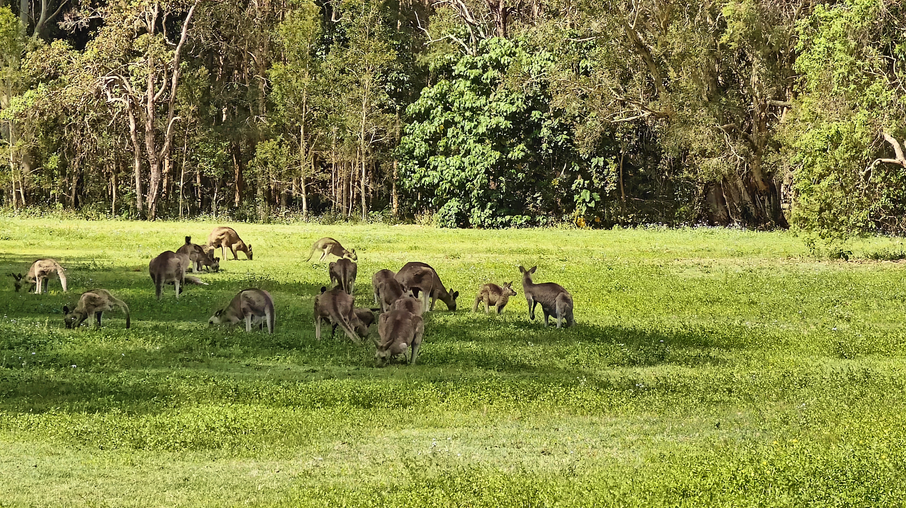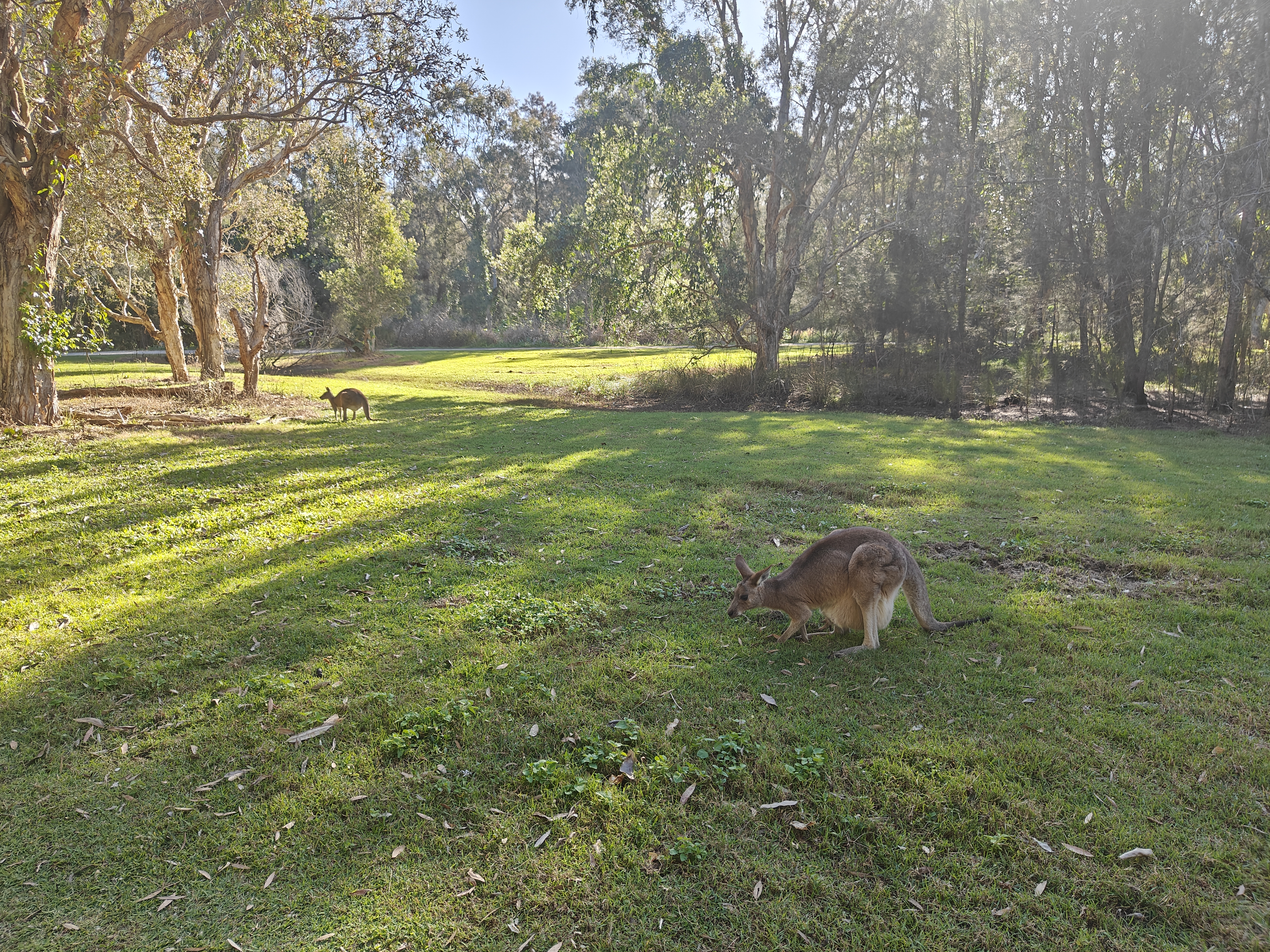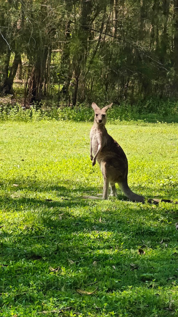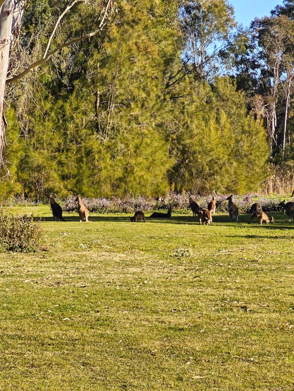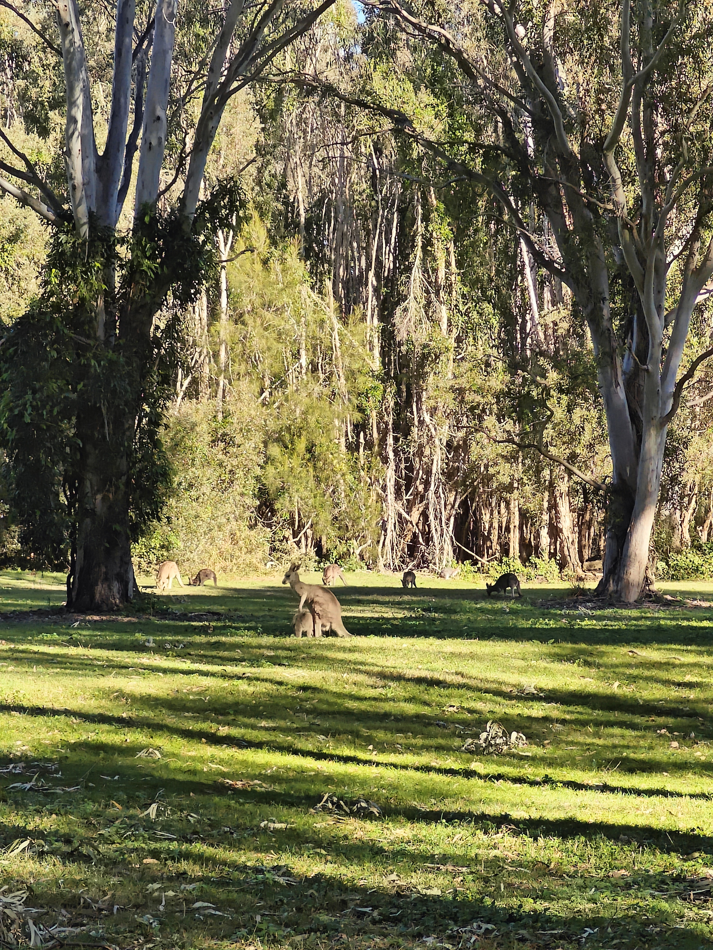 And we didn’t just see a baby koala, we also had another encounter with a roo mom with a joey poking its head out, eating with its mom. So adorable!!