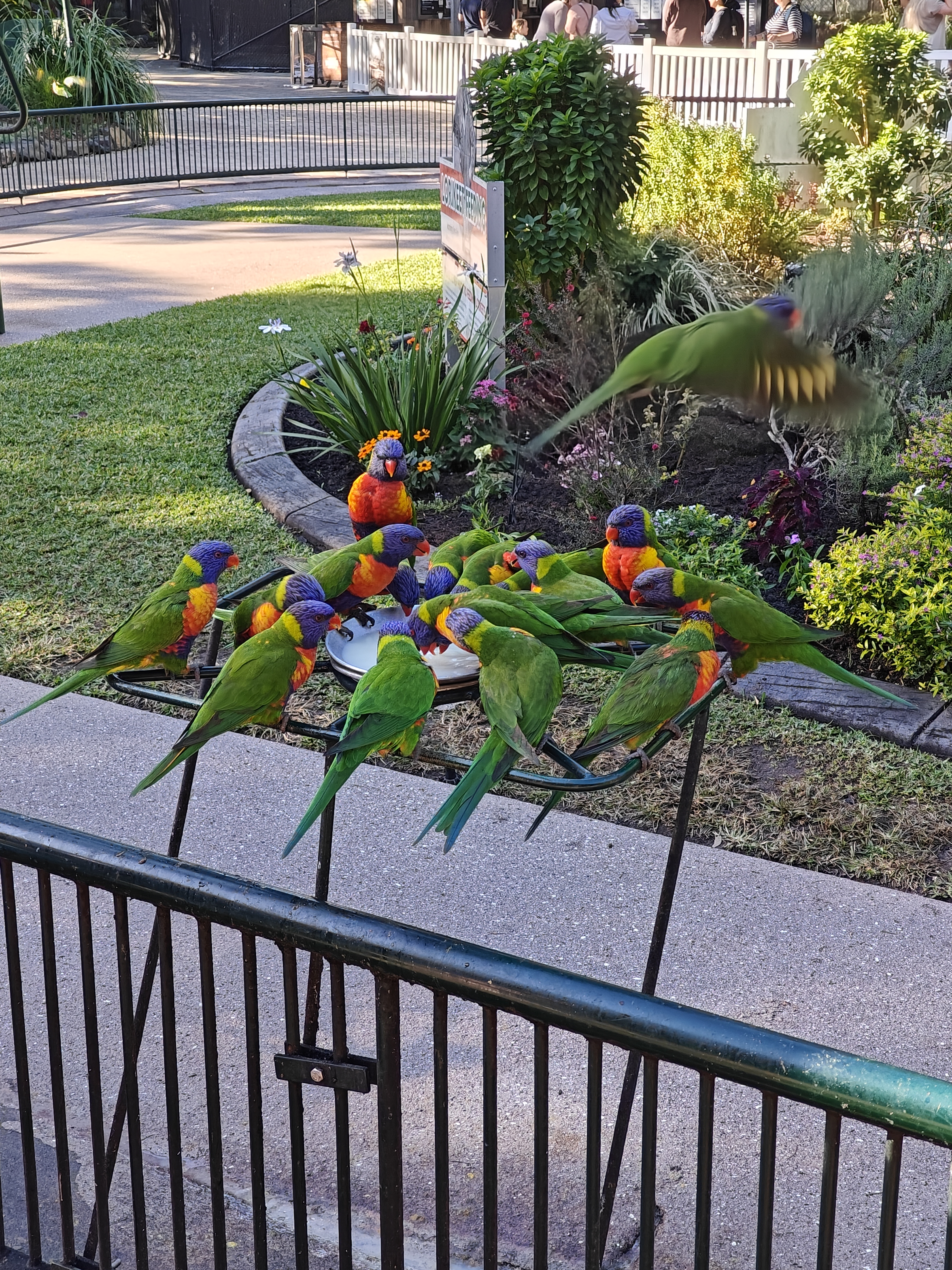 In the morning and afternoon, they had Lorikeet feeding just outside the entrance to the sanctuary. There were tons of the colorful birds, they were sitting on people and chatting.
