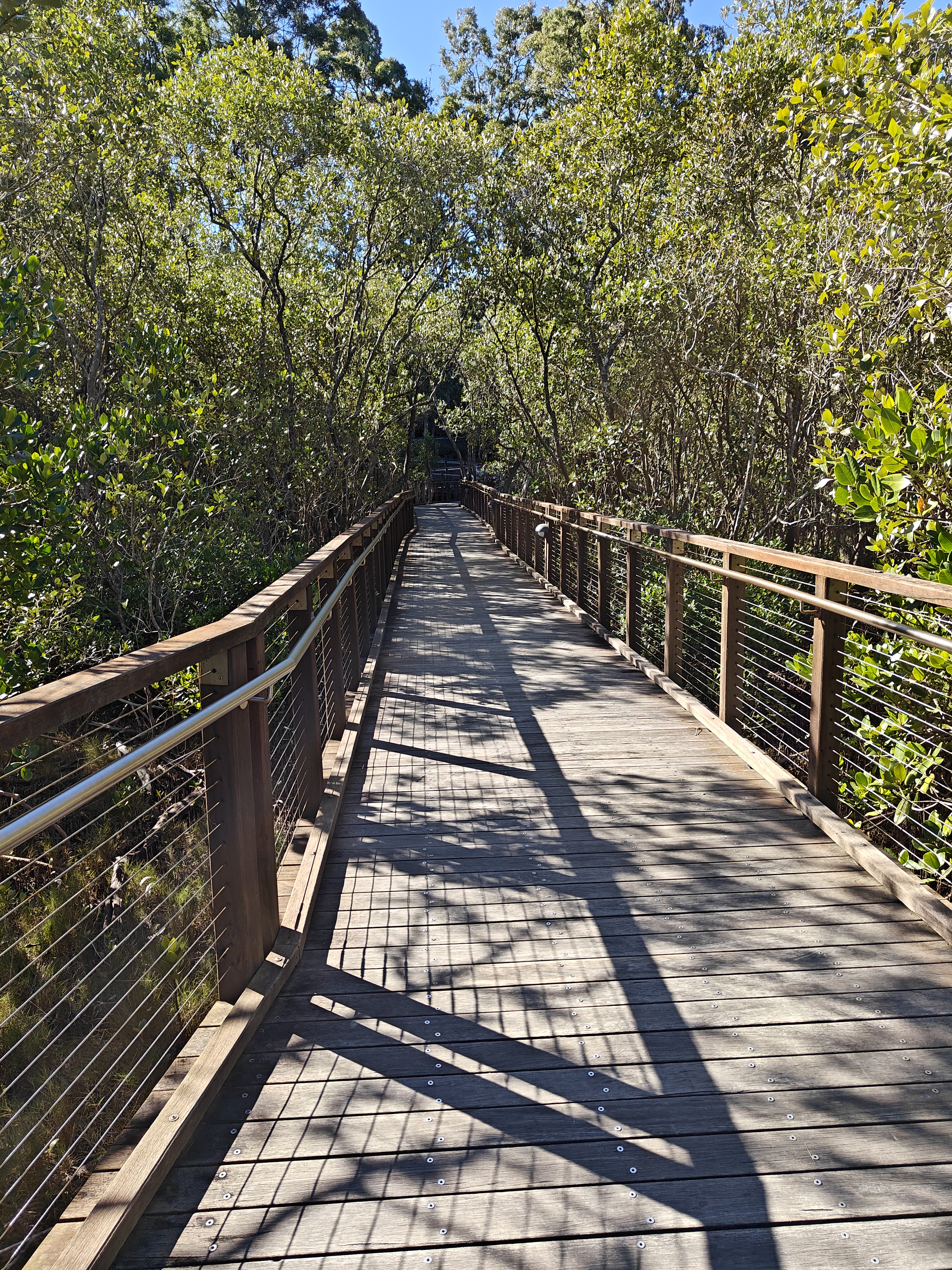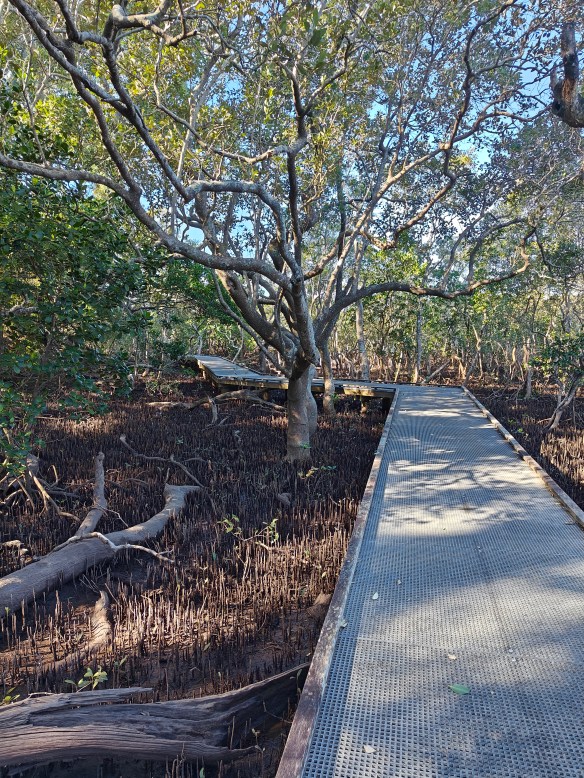 The Mangrove Trail starts just at David Fleay Wildlife Park in Burleigh Heads and, as the name states, goes through mangrove swamps. At least a little bit. Then the path was up on the side of the hill, among tall trees and countless birds everywhere. It was magical! I’m so glad there are parts here which are untouched and unexploited. It felt like walking through the rainforest. No koalas, even though there were several warning signs of them being present.