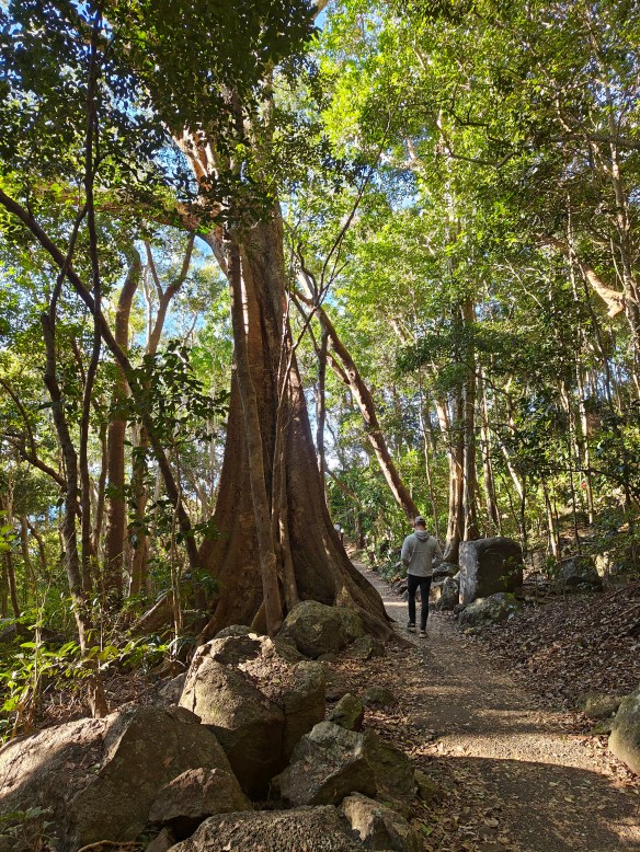 There are three tracks in Burleigh Heads National Park and we have walked two of them now, the Ocean View and the Ocean View Lookout. The Lookout Track today, I feel like the name is a bit deceiving. We saw the ocean only at the Burleigh Hill Lookout spot because the forest was so dense. The trees were massive and some trunks were so big and weirdly shaped. No koalas here either. I’ve heard you can see them in this national park, but maybe our third time, on the Rainforest Track.