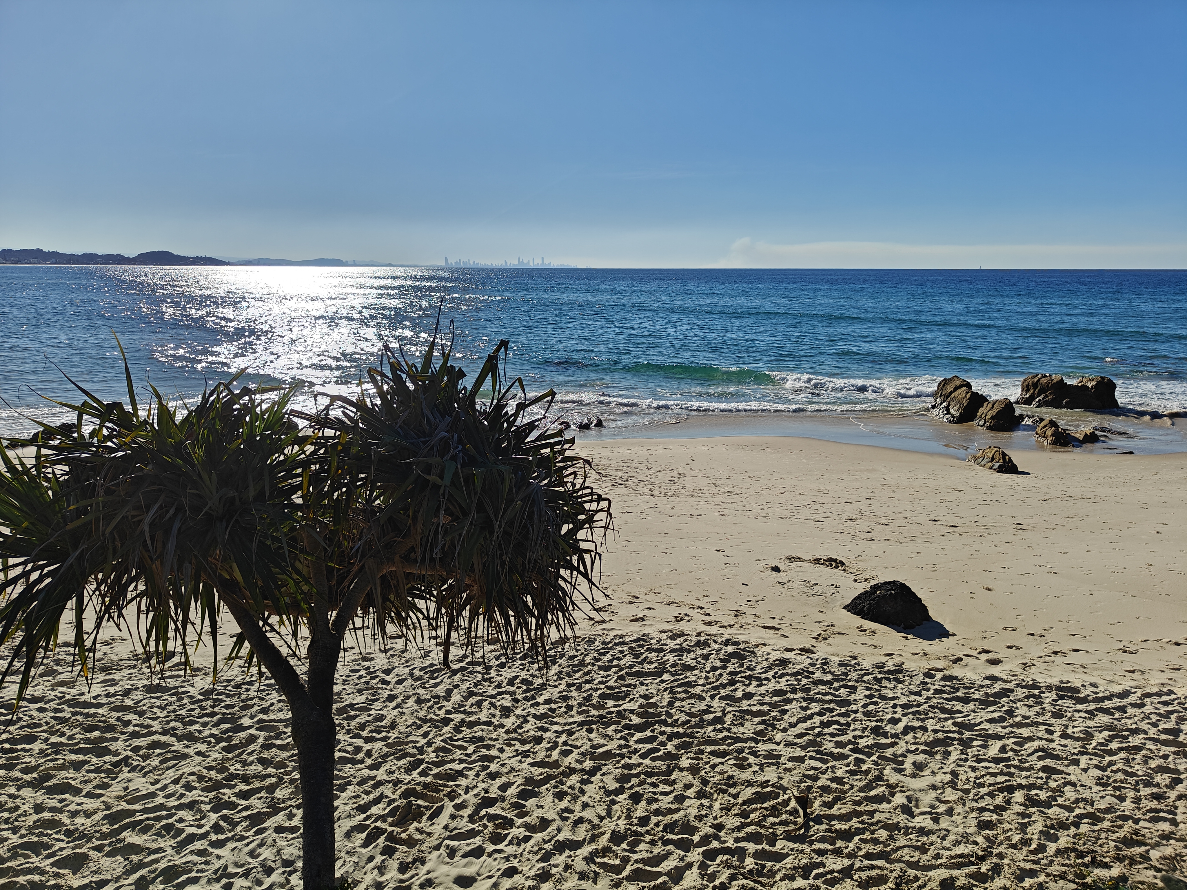 Even when we are sleeping in, we still manage to see and do lots of stuff. It was super cloudy this morning anyway, so we didn’t miss too much getting out at noon. We had brunch at Cafe Kirra (pancakes and smashed avo sourdough) and then walked to Rainbow Bay Lookout and over to Snapper Rocks. Two lookout points south of Kirra, where we are staying. When the sun came out, it was so warm and lovely today.