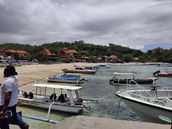 We got a really nice driver to take us to Padangbai Harbor from where we took the speed ferry out to the islands. We stopped on the way at his favorite local restaurant so we could try local Balinese food, suckling pig. He was even so kind as to talk to the waitress to not make it so spicy. We took takeaway and ate while waiting for the ferry. It was good, but I do understand why the Balinese like to add spices. Not sure that I liked the crunchy skin pieces which he said was his favorite. But it was great to try some real local food.
