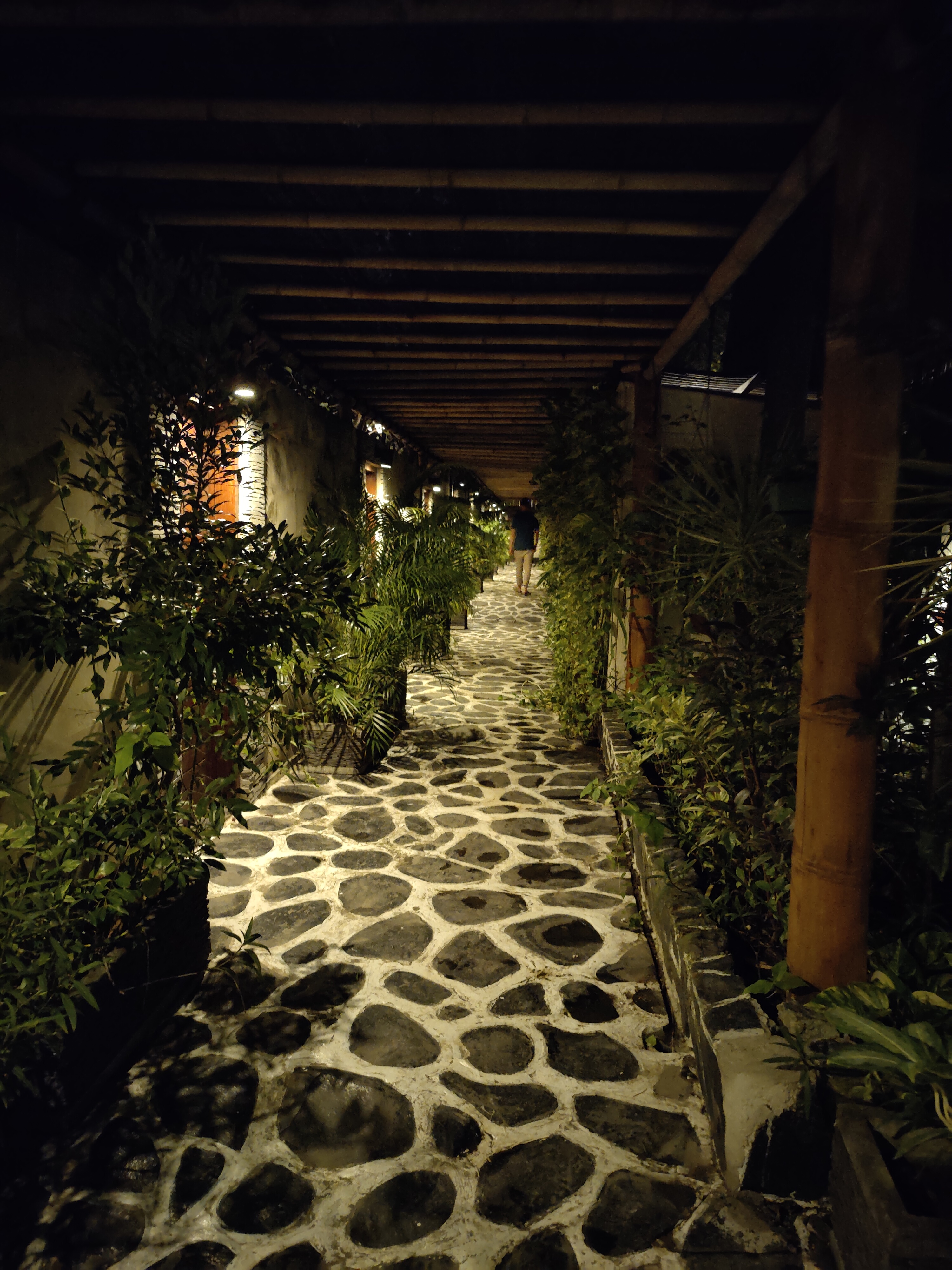 We walked back, tried the outdoor shower and then walked to Pearl Beach Lounge to have dinner. That salmon was incredible. So was the pina colada and steamed brownie. Wow! And the mouse falling from the ceiling, passing out until the waiter shoveled him up and went downstairs and he darted away, was crazy! The evening was pretty much as warm as the day and nothing else than a thin-striped dress was needed while eating outdoor. What a place! We’re in love. And I think I can speak for Mikael as well. I already feel that 4 nights and 3 days here won’t be enough…