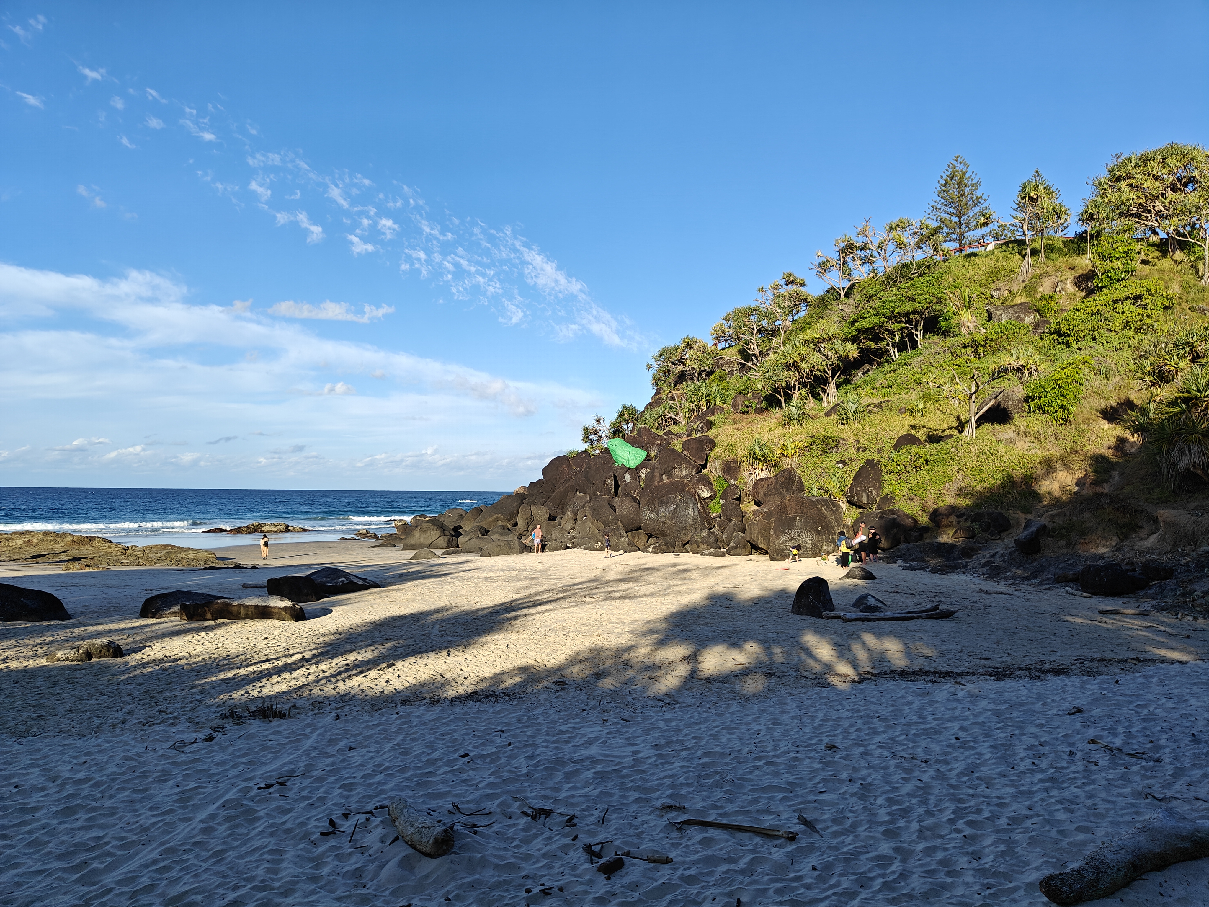 Even when we are sleeping in, we still manage to see and do lots of stuff. It was super cloudy this morning anyway, so we didn’t miss too much getting out at noon. We had brunch at Cafe Kirra (pancakes and smashed avo sourdough) and then walked to Rainbow Bay Lookout and over to Snapper Rocks. Two lookout points south of Kirra, where we are staying. When the sun came out, it was so warm and lovely today.