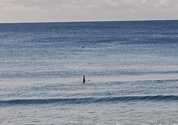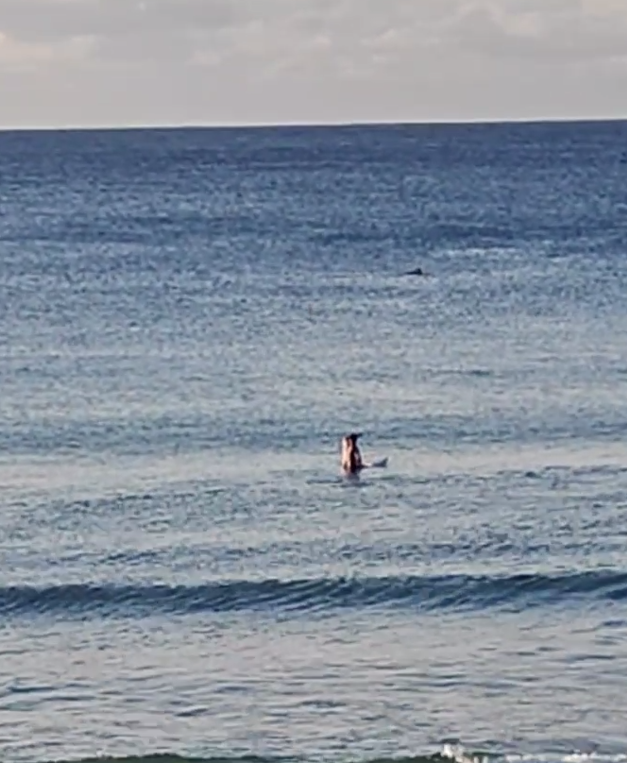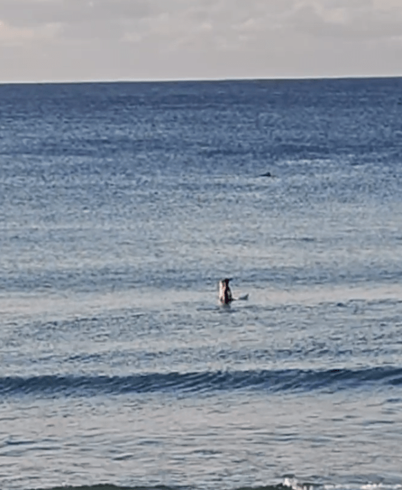 Dolphin (above the surfer). Unfortunately the best I could do as I only filmed and these are screenshots.