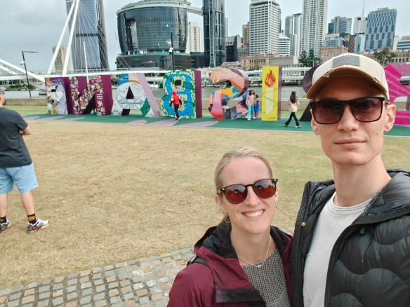 We walked across Story Bridge and through Kangaroo Point and along the Brisbane River to Southbank. We had a coffee at The Jetty, walked around, hid from swooping birds (no, we didn’t, it’s not swooping season yet, but Mikael had a small bird almost flying into his head honestly), saw the man-made beach Streets Beach, were super tourist-y by the BRISBANE sign, watched the Wheel of Brisbane (a copy of Lisebergshjulet) and spent some time inside the Queensland Museum.