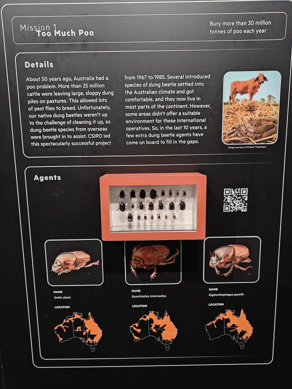 The Queensland Museum was free and we watched both of their current exhibitions; Insect Agency and Dinosaurs Unearthed: Explore Prehistoric Queensland. Did you know that there are 1,25 million insects to every human on Earth? Or that Australia imported beetles 50 years ago to deal with a huge pasture poo problem? Or that three quarters of all of Australia’s 450 species of butterflies live in Qld? I really enjoyed that exhibition on insects. Mikael got really tired (and doesn’t like bugs for some reasons, something new I learned about him after more than four years) and we didn’t spend as much time as I wanted in the dinosaur exhibition. It was so interesting. The magafauna of Australia, wow! Supercool!