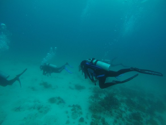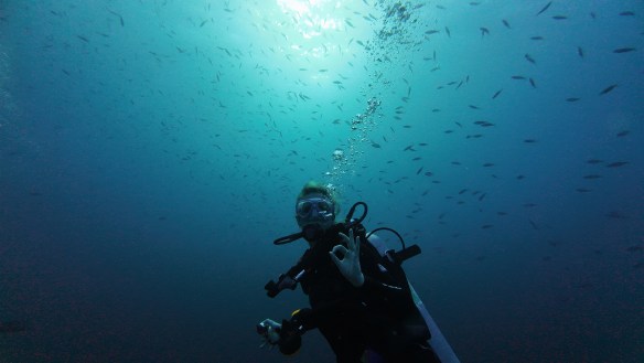 We started the dive as the sun was setting so at first, we didn’t use the torches. Eventually though, the sun disappeared and it grew darker and darker. The visibility was okay, but it was hard to keep track of who belonged to our group since there were so many other divers. I think that was great though, because even if it obviously was dark all around, you didn’t feel alone and isolated and closed in. That was what I had been afraid of, feeling claustrophobic. But it was fine. It was a very different experience diving when it was dark, for sure. But not sure if that is something I want to do a lot of in the future. It was cool to have tried and it might get cooler with time and experience, but right now I feel fine with diving during the day with great visibility (I miss Gili T where all the dives had 50+ m visibility, we really took that for granted).